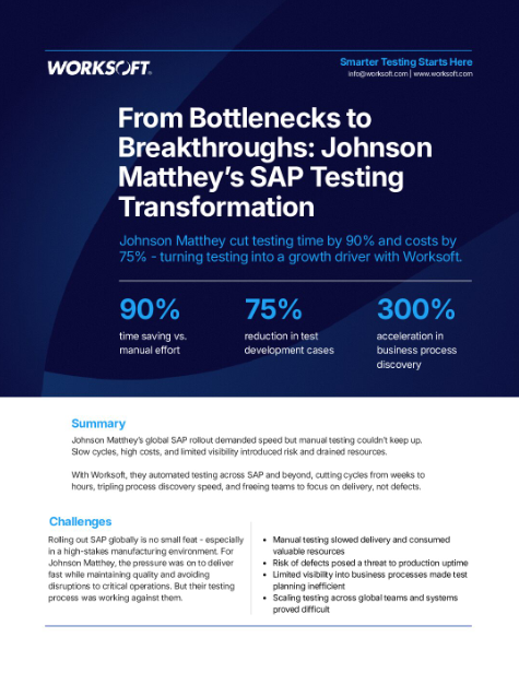 In this case study, you’ll learn how Worksoft helped Johnson Matthey: